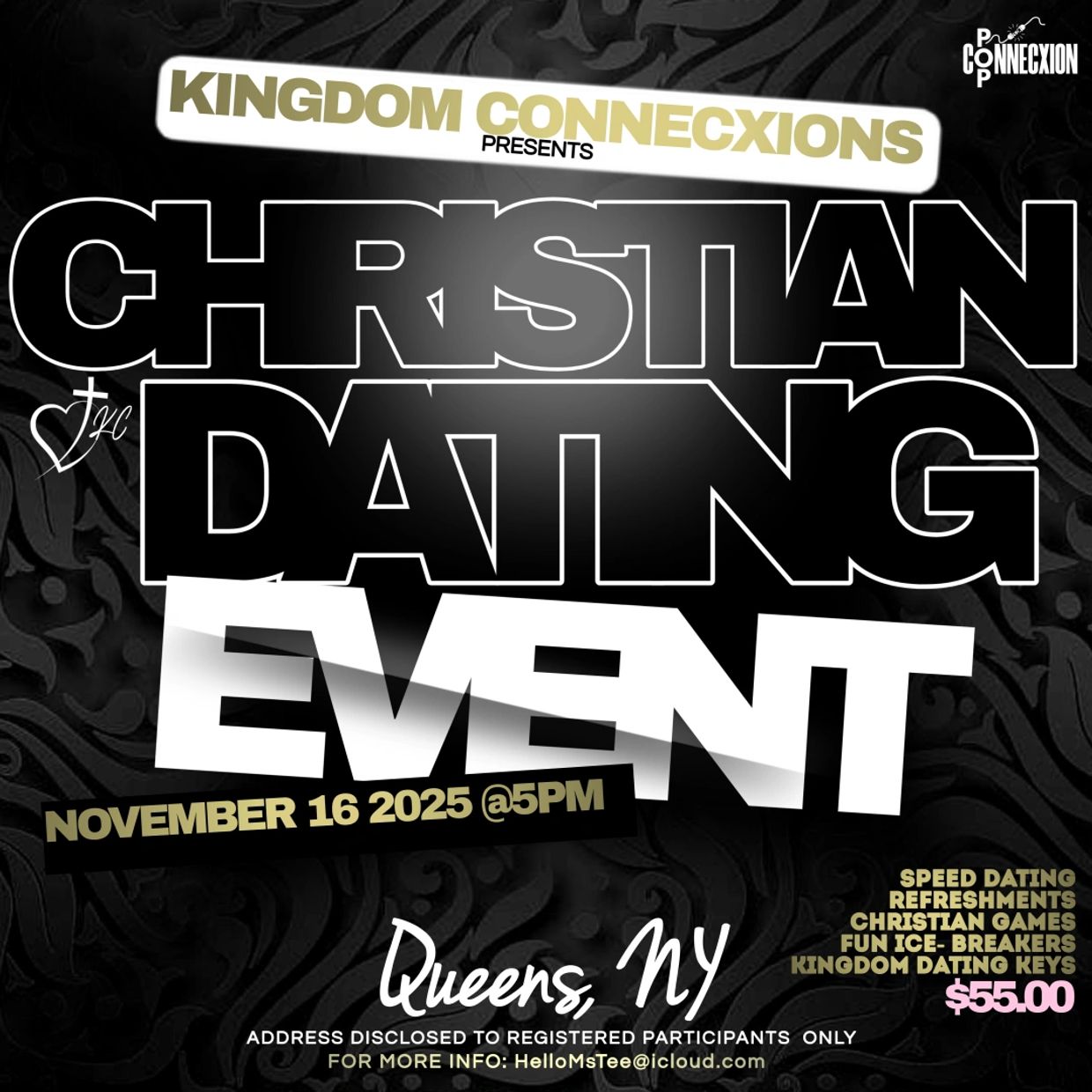 JOIN US FOR DIVINE CONNECXIONS. AN EVENT FOR SINGLE CHRISTIANS WITH THE INTENT OF DATING THE KINGDOM WAY!